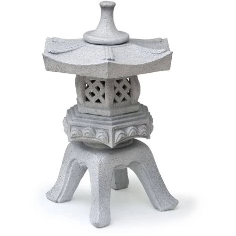 La sculpture de jardin présente de manière unique le toit hexagonal protégeant contre la neige en hiver. La lanterne de jardin a une couleur uniforme, apportant un air d’élégance à tout point d’eau ou espace extérieur. Elle est faite de poly-résine, une résine synthétique, et est donc légère et résistante aux intempéries.